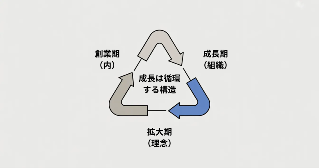 結論から言うと、起業家の成長は「階段型」ではなく「循環構造」です。
